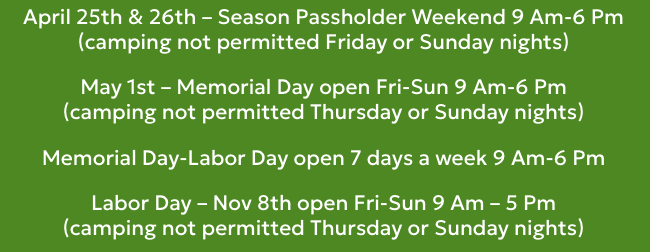 April 25th & 26th – Season Passholder Weekend 9 Am-6 Pm